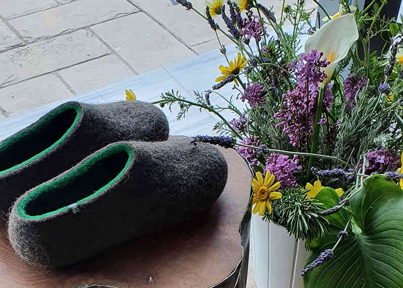 Μέσα στη ζέστη του καλοκαιριού, με νέα καταστροφικά στον κόσμο που δεν μπορώ να αγνοώ, συνεχίζω να φτιάχνω μάλλινες παντόφλες. Κάποιες από αυτές αφιερώνω σε καλό σκοπό.