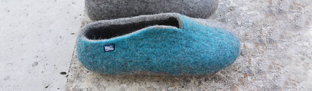Φτιάχνονται με γκρι φυσικό μαλλί προβάτου και τα έξτρα χρώματα που είναι διαφορετικά σε κάθε παντόφλα, μπαίνουν στα πλάγια.