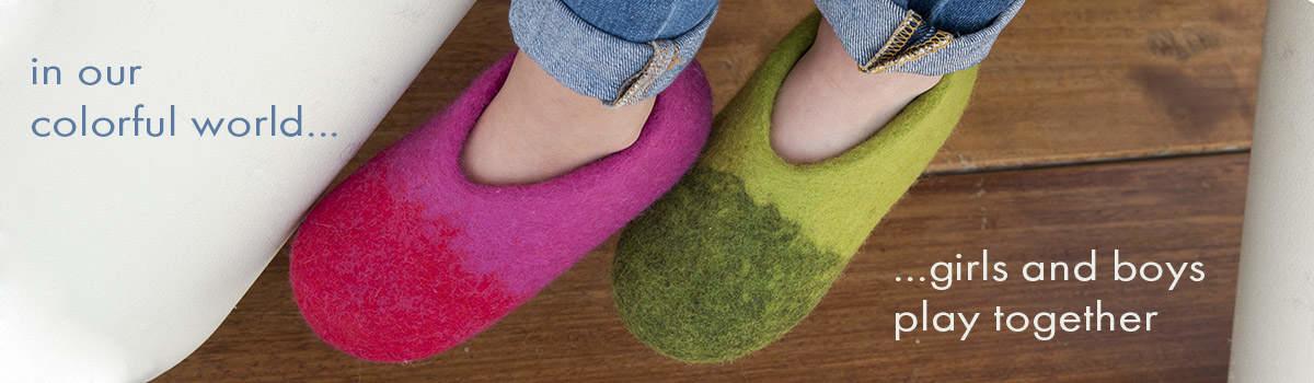 Παντόφλες σπιτιού "COLORI" βαθυ πορτοκαλι - μπλε