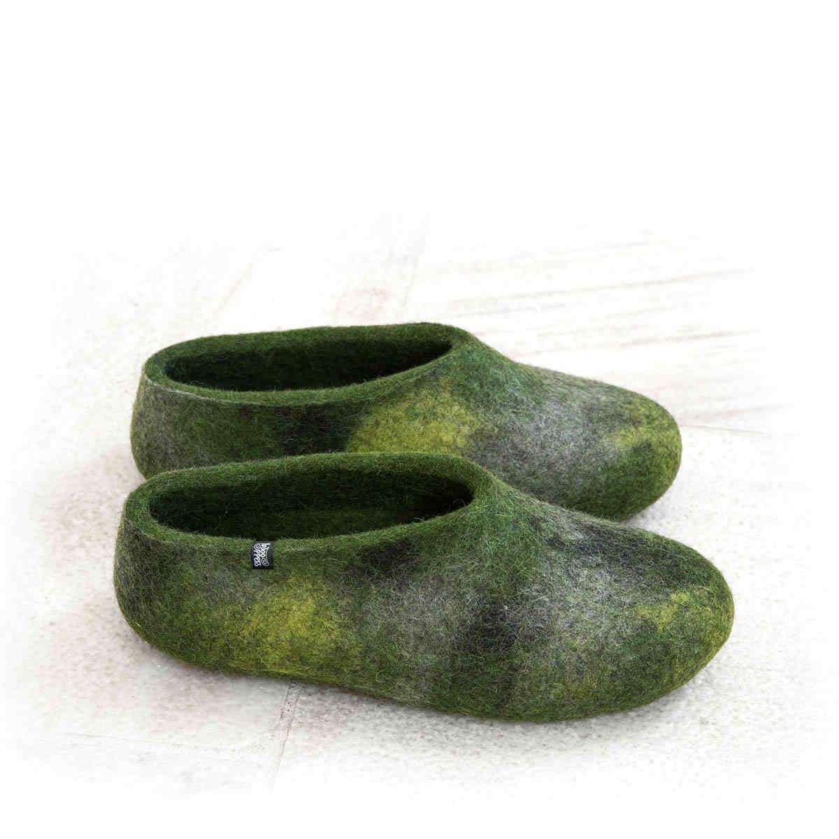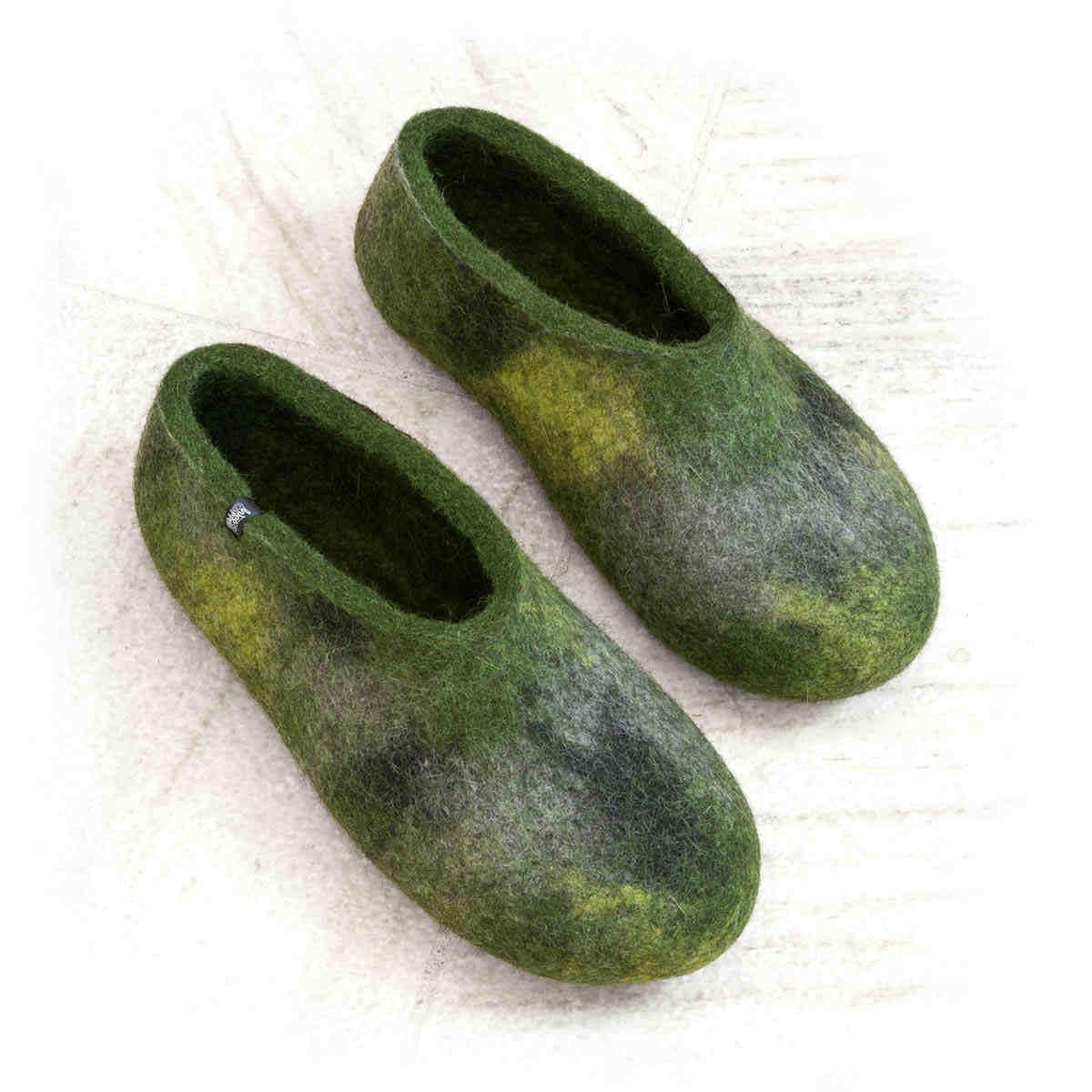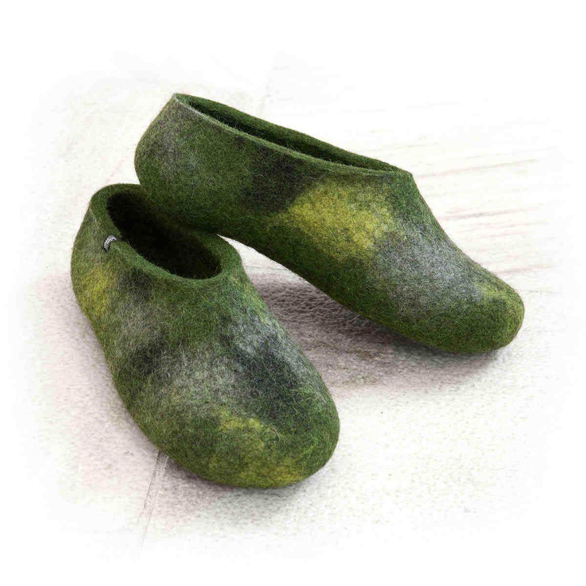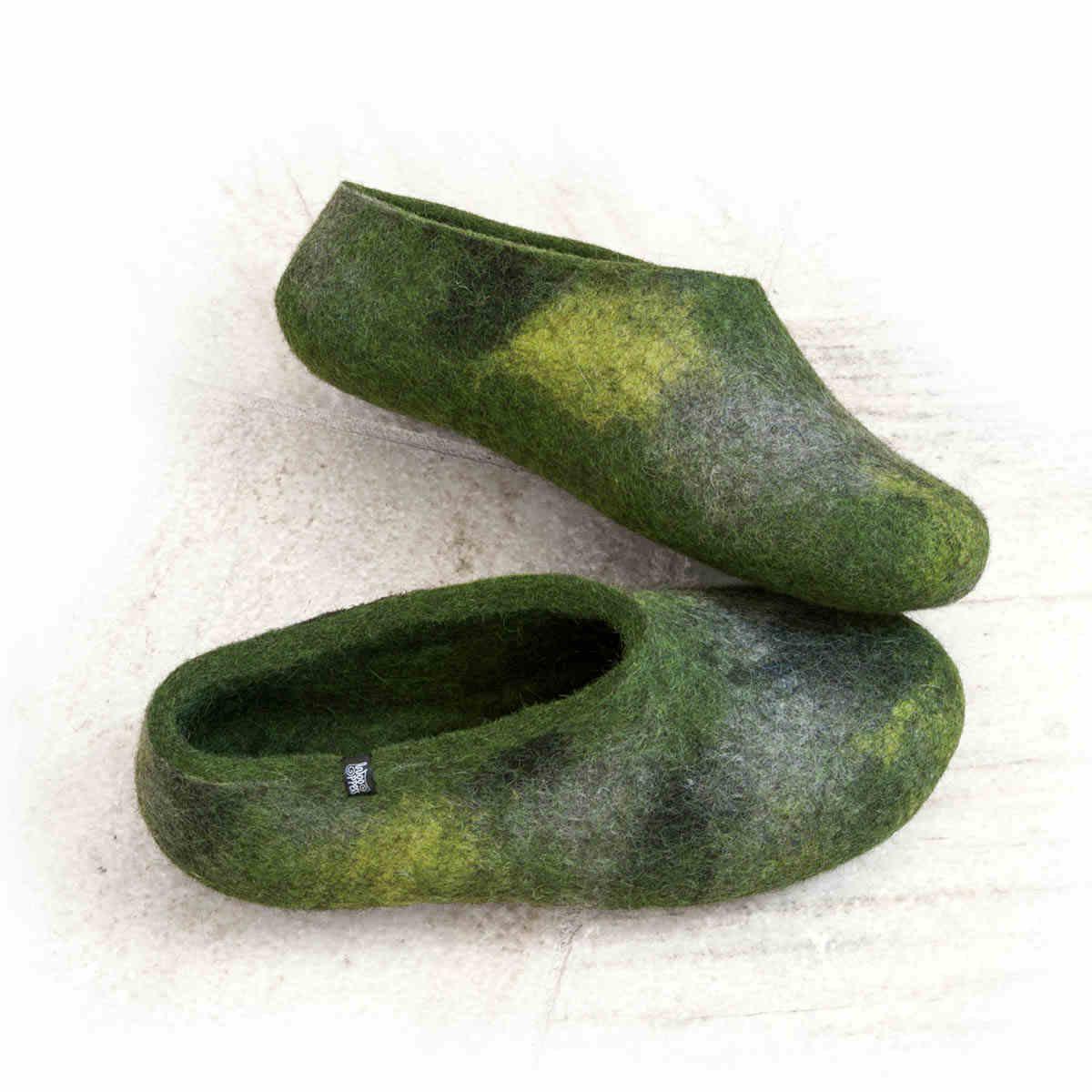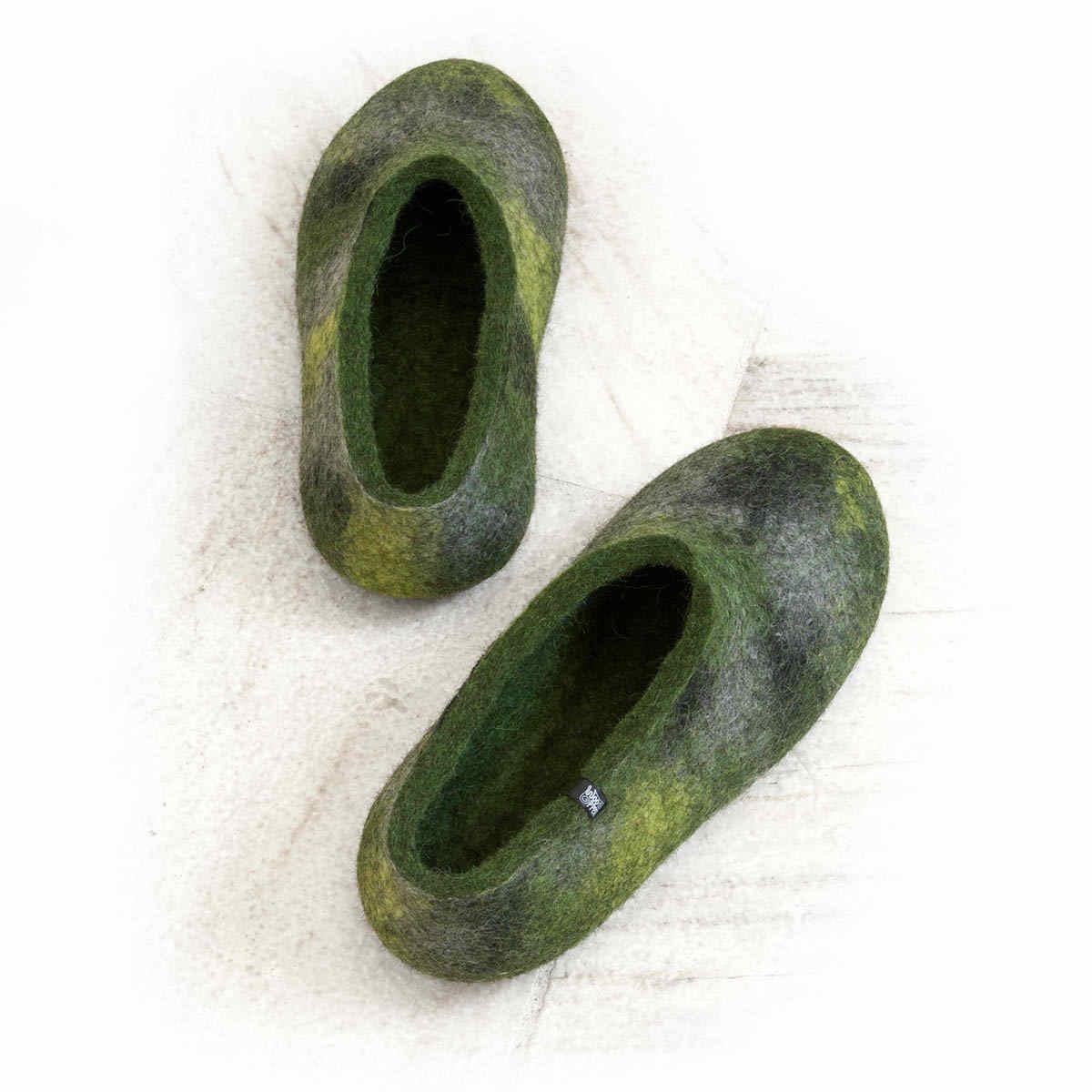 Άνετες παντόφλες από μαλλί σε πράσινες και γκρι αποχρώσεις.