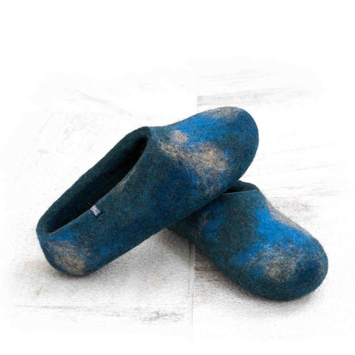 Μάλλινες Παντόφλες σπιτιού “COLORI” γκρι μπλε