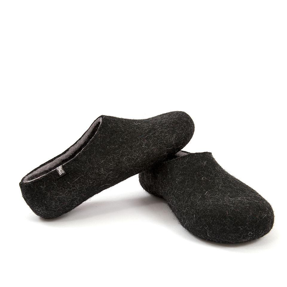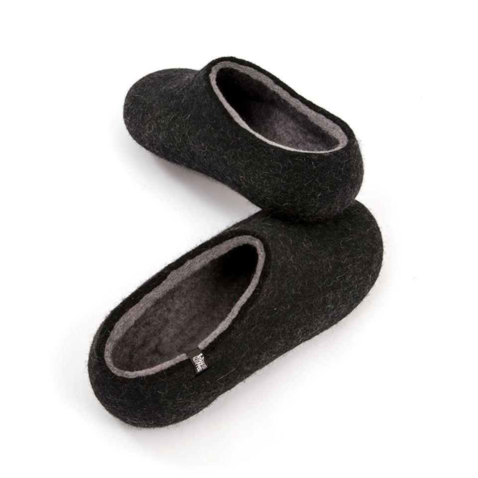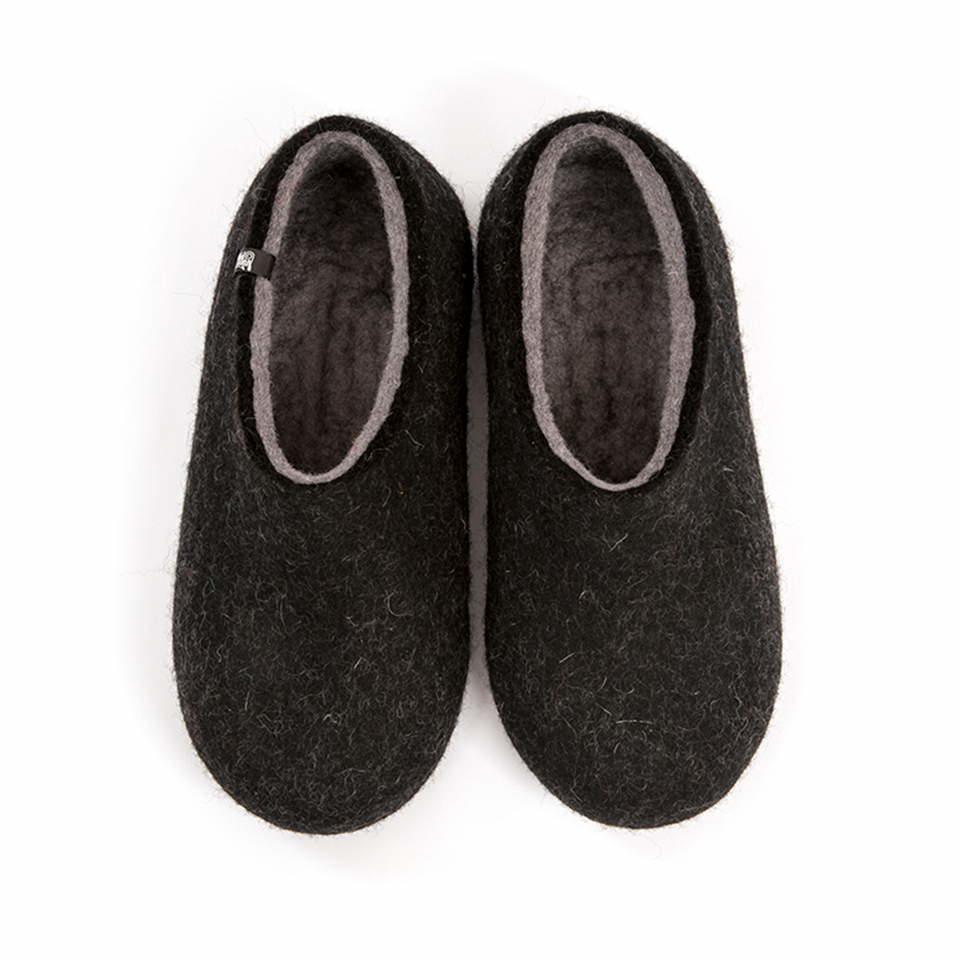 Μαύρες παντόφλες με γκρι στο εσωτερικό τους.