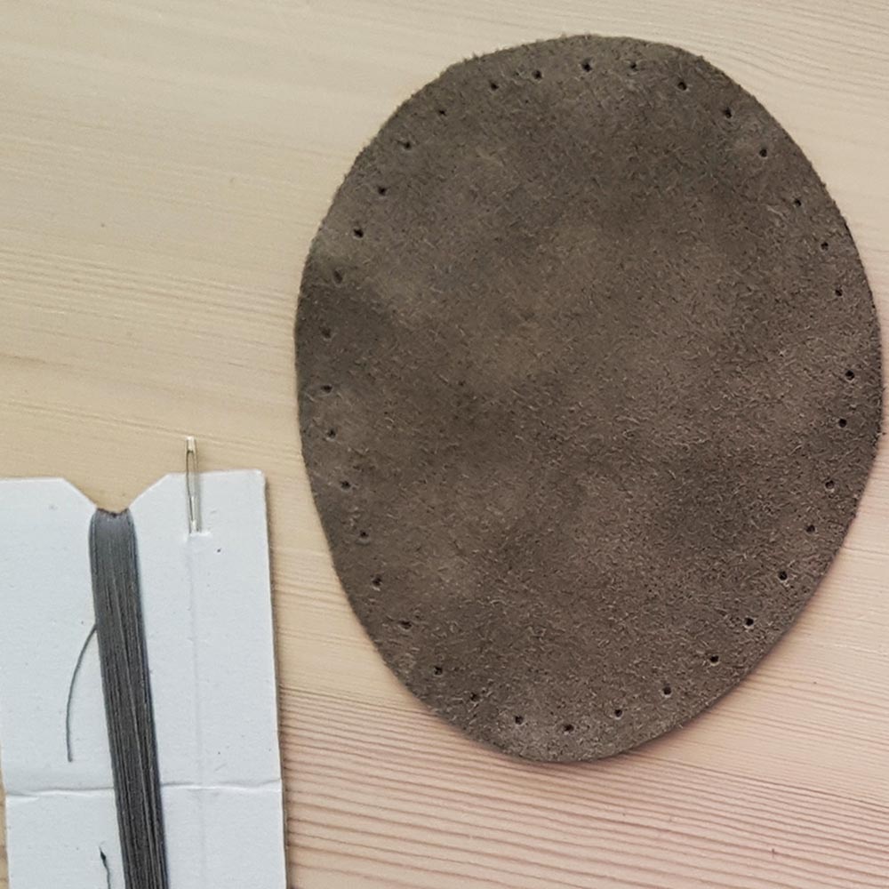 Το σετ περιλαμβάνει σουέτ δερματάκια, κλωστή, βελόνα και οδηγίες.