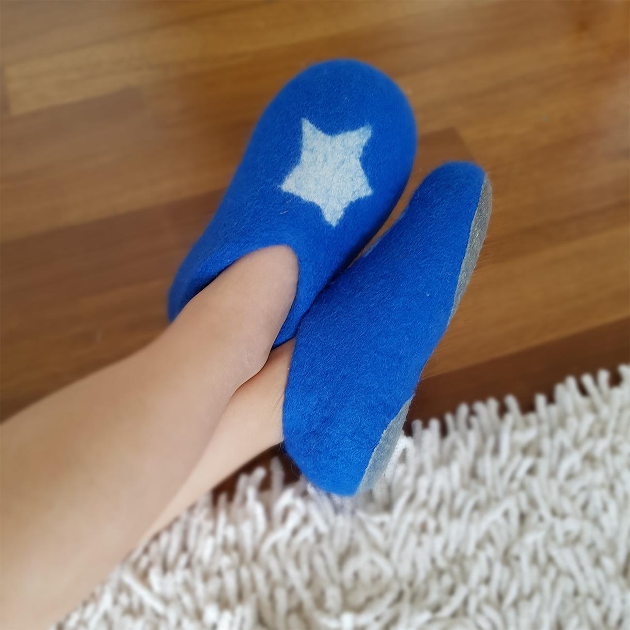 Τσόχινες παντοφλίτσες μπλε STAR για αγόρια της Wooppers.