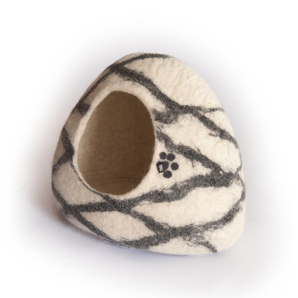 Σπίτια για γάτες, χειροποίητα, από 100% φυσικό μαλλί προβάτου σε φυσικούς τόνους ώστε το οργανικό τους σχήμα να ταιριάζει στο σύγχρονο σπίτι. Η φωλιά για γάτες φτιαγμένη σε φυσικό άβαφο μαλλί καθώς είναι ζεστή το χειμώνα και δροσερή το καλοκαίρι έλκει το γατάκι σας προσφέροντας του την προστασία και ζεστασιά που χρειάζεται.