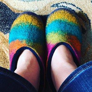 My slippers arrived this morning. They are absolutely gorgeous! And fit super nicely! It will be though to ever pull my feet out of this wool heaven again 😉 I’m super happy thanks very much for making these…