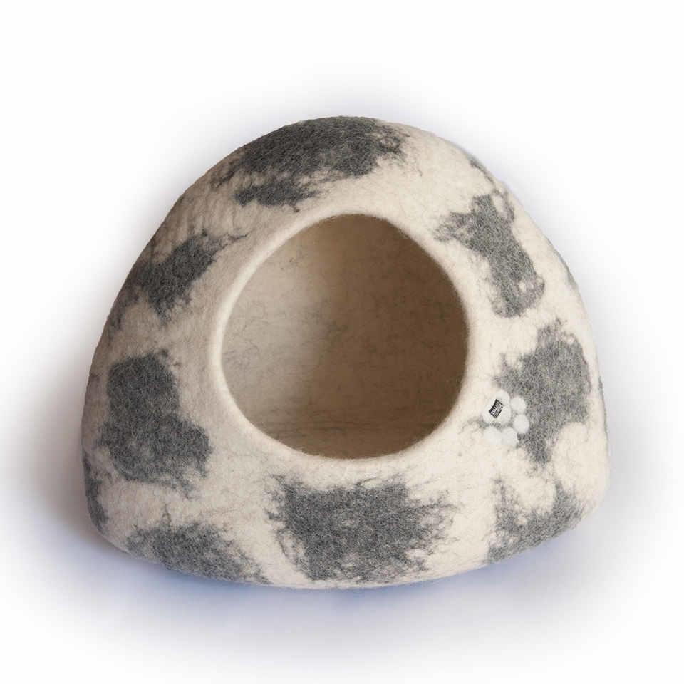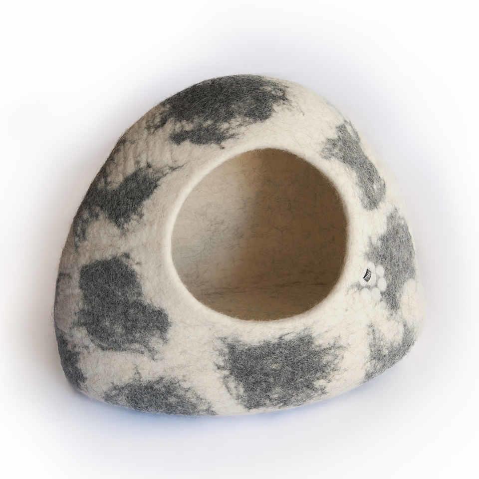 Igloo felt cat cave / wool cat house white w. grey shades