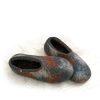 These handmade wool slippers are made in tough fiber sheep wool in order to gently massage your feet. The felt made from such wool is very breathable. Therefore the slippers will be breathable even if you choose either latex soles or swede leather sole patches.