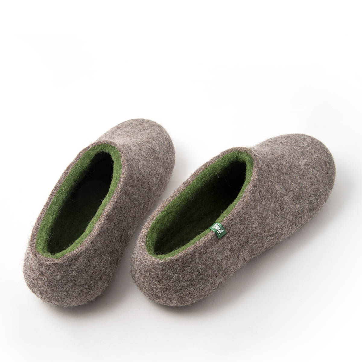 The DUAL NATURAL Collection is made up of two different kinds of wool. The outer layer is made of natural grey strong sheep wool and the inner layer of soft merino in a variety of colors. This combination adds durability while the slippers remain soft and comfortable even on bare feet.