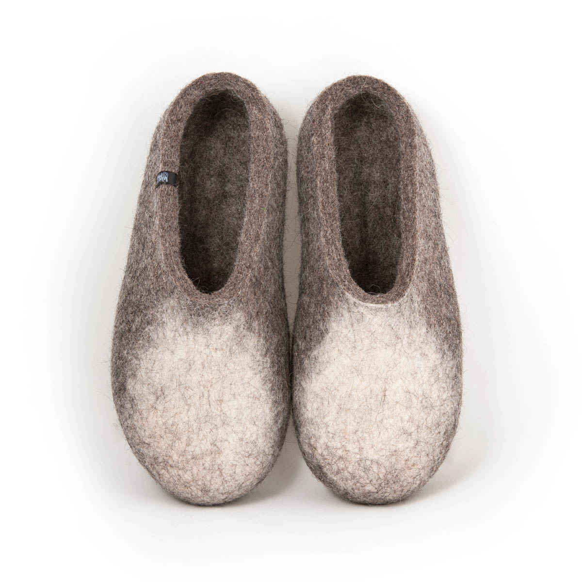 Mens slip on slippers, handmade using 100% mountain sheep wool.