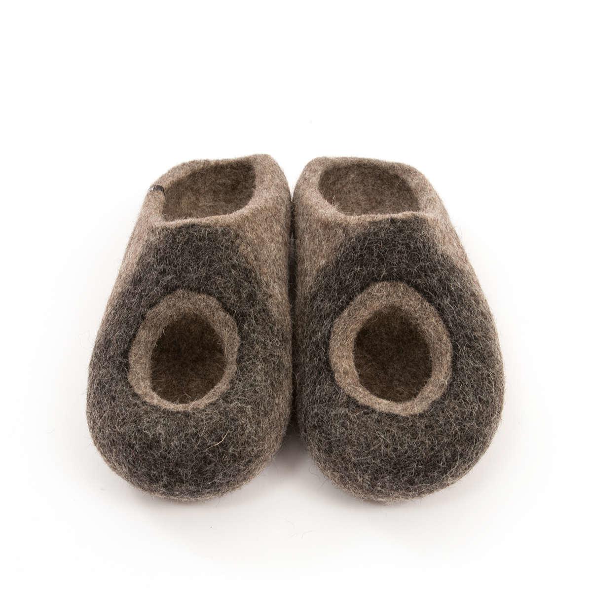 A Summer Collection of felted slippers made of mountain sheep wool, which is strong and allows bigger air pockets in the felt. The slippers feature a cut-out hole for more ventilation and have no rubber sole attached so wool remains 100% breathable.