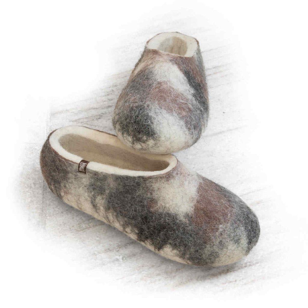 AMIGOS wool slippers brown grey white