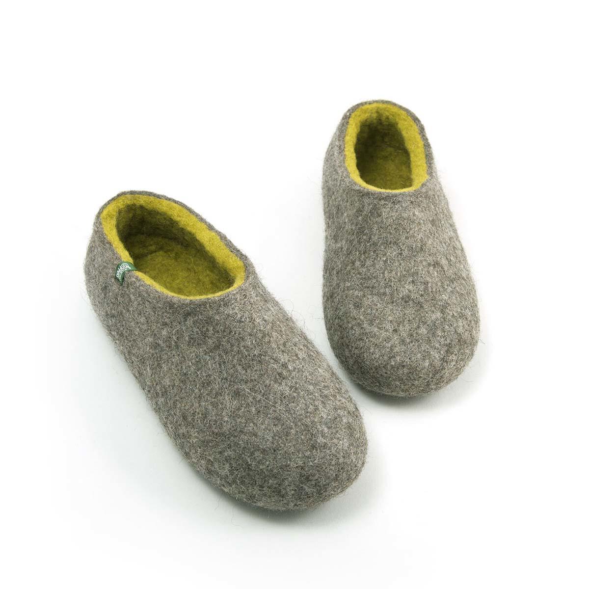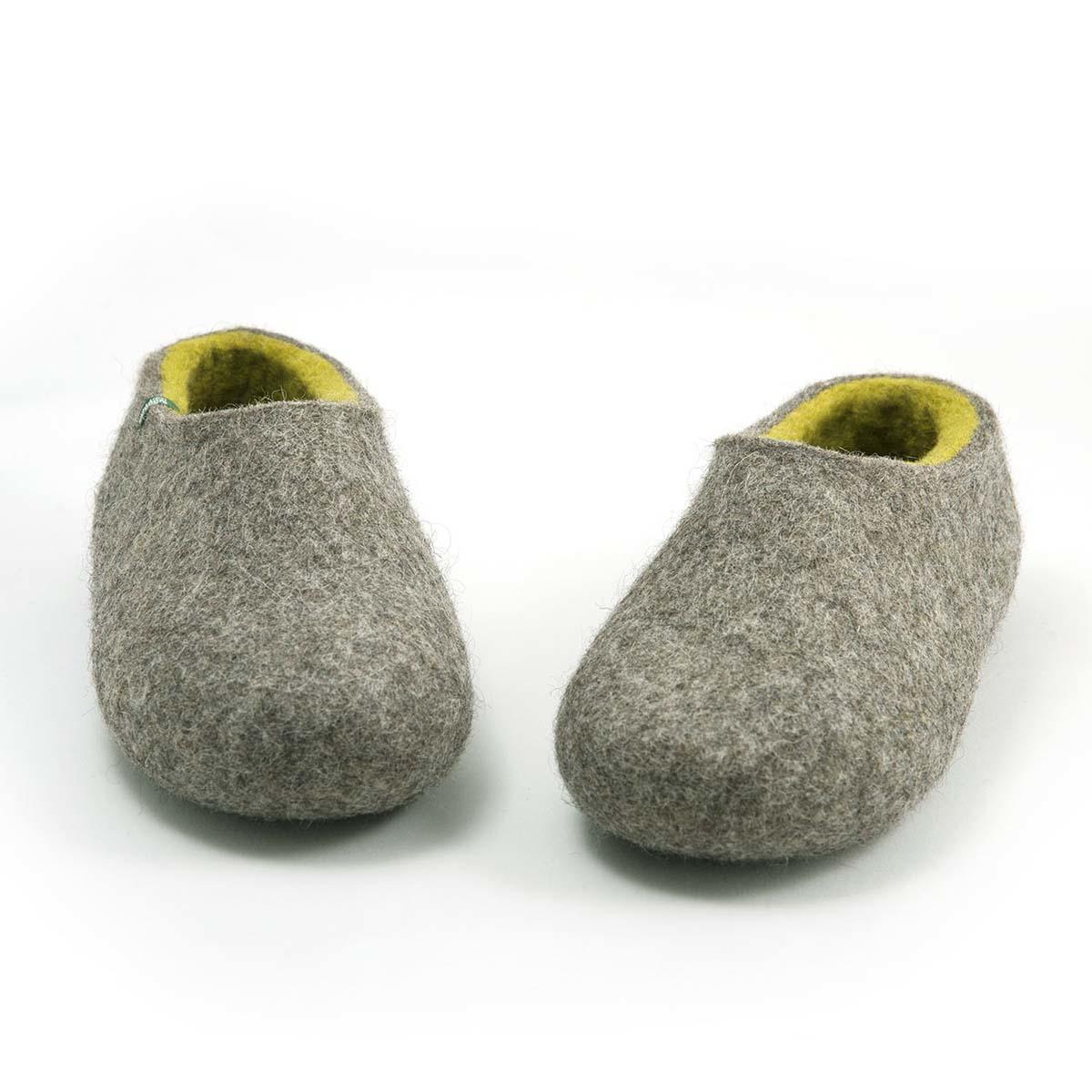 The DUAL NATURAL Collection of felted slippers is made up of two different kinds of wool. The outer layer is made of natural grey strong sheep wool and the inner layer of soft merino in a variety of colors.