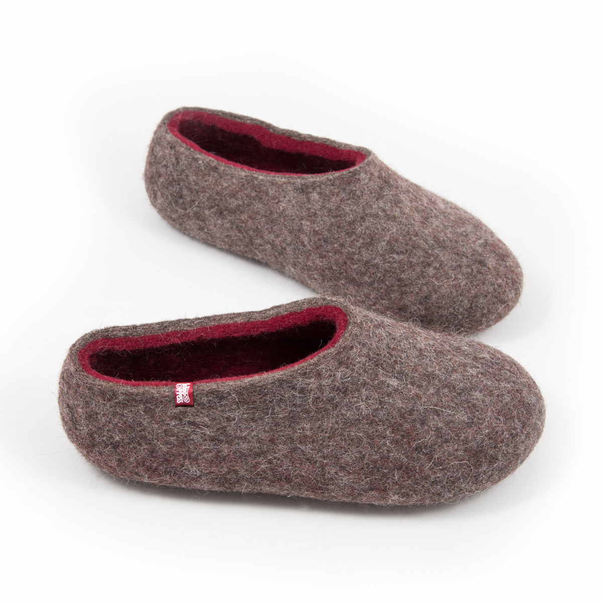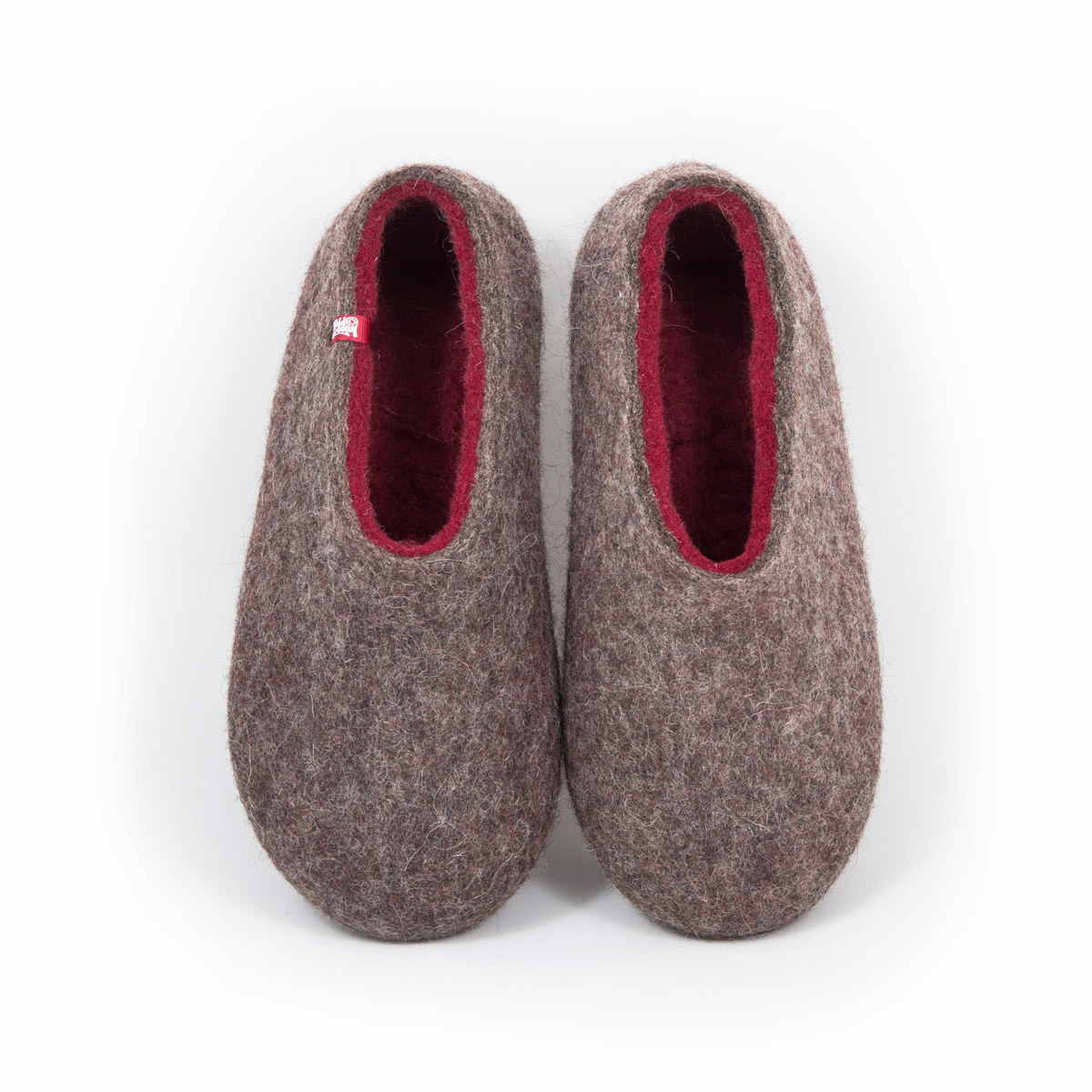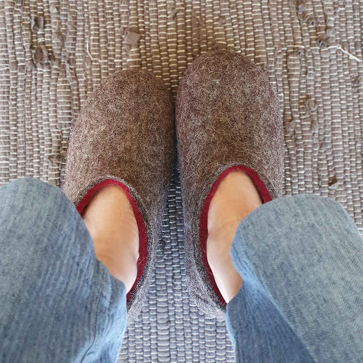 The DUAL NATURAL Collection of felted slippers is made up of two different kinds of wool. The outer layer is made of natural grey strong sheep wool and the inner layer of soft merino in a variety of colors.