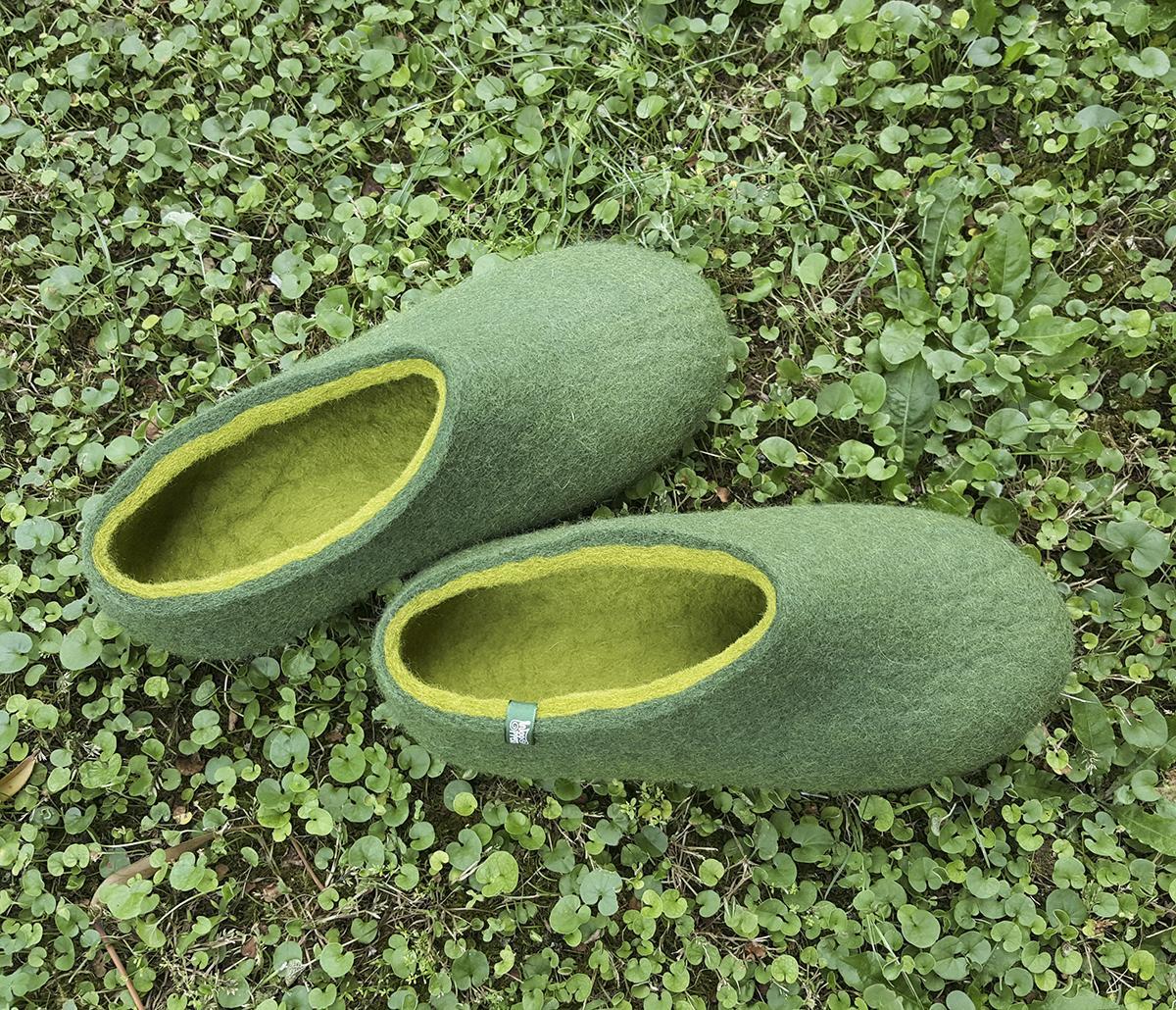 We use 100% merino wool for our Wooppers slipper flats and we are wet felting them without any seams. Therefore your slippers will hug your feet just like a warm glove.