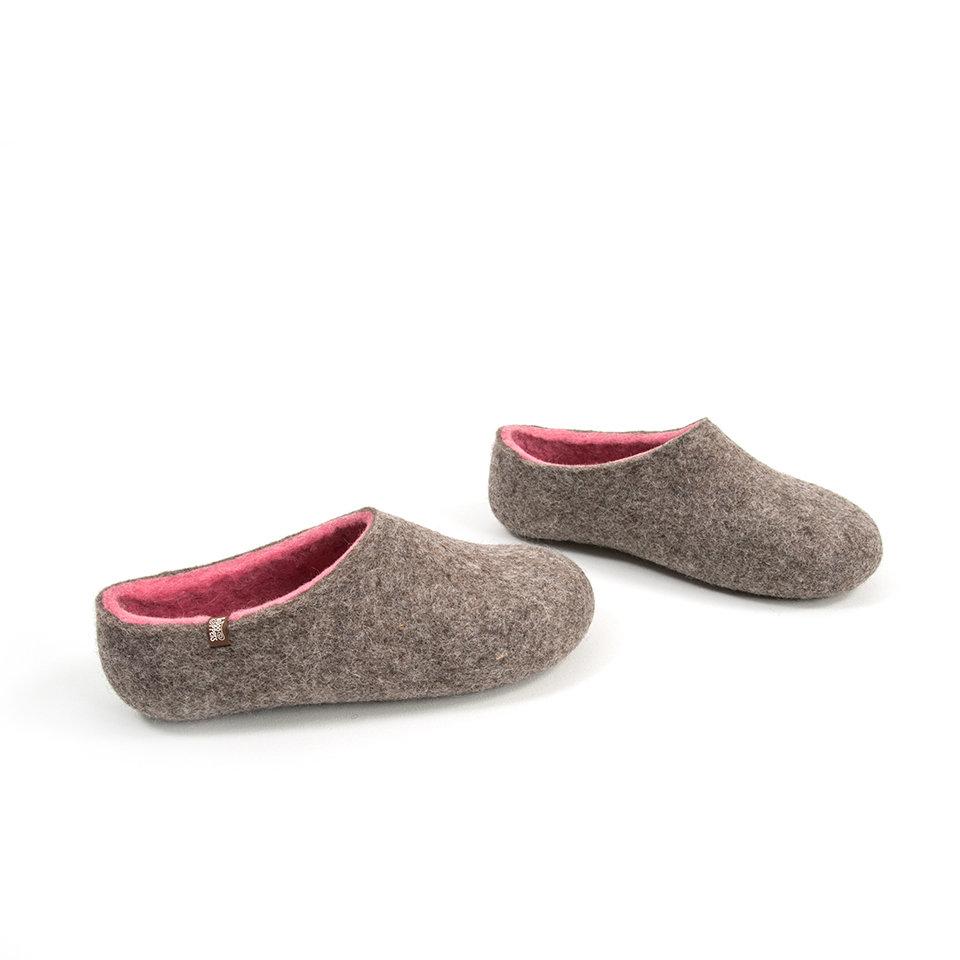 Felted slippers DUAL NATURAL gray fuchsia