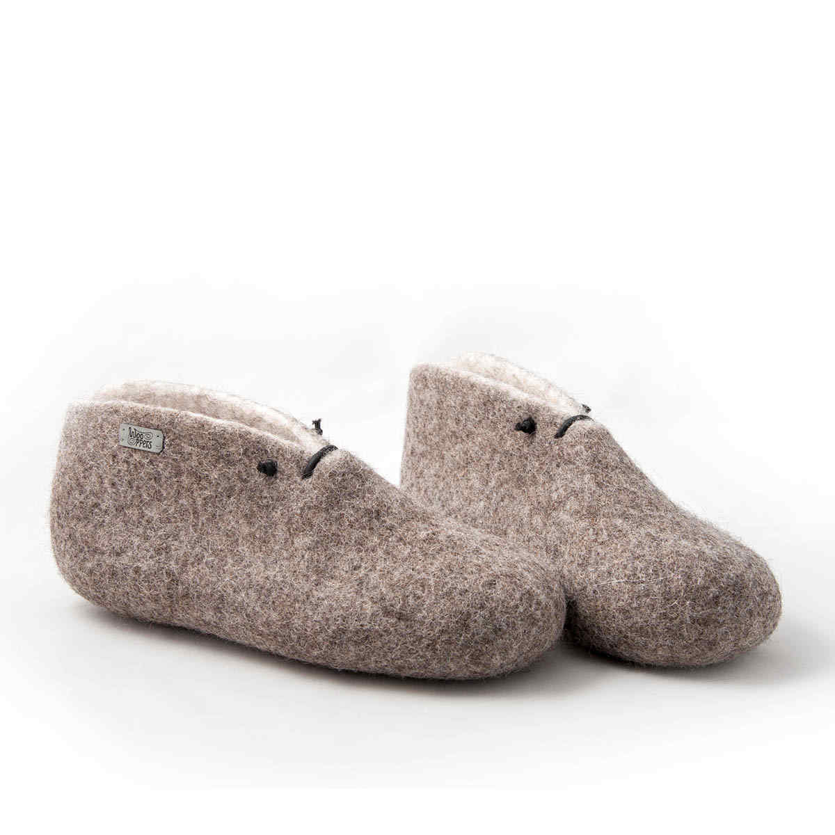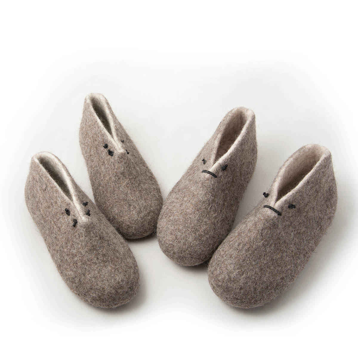 Slipper booties in soft merino wool and strong natural grey mountain sheep wool.