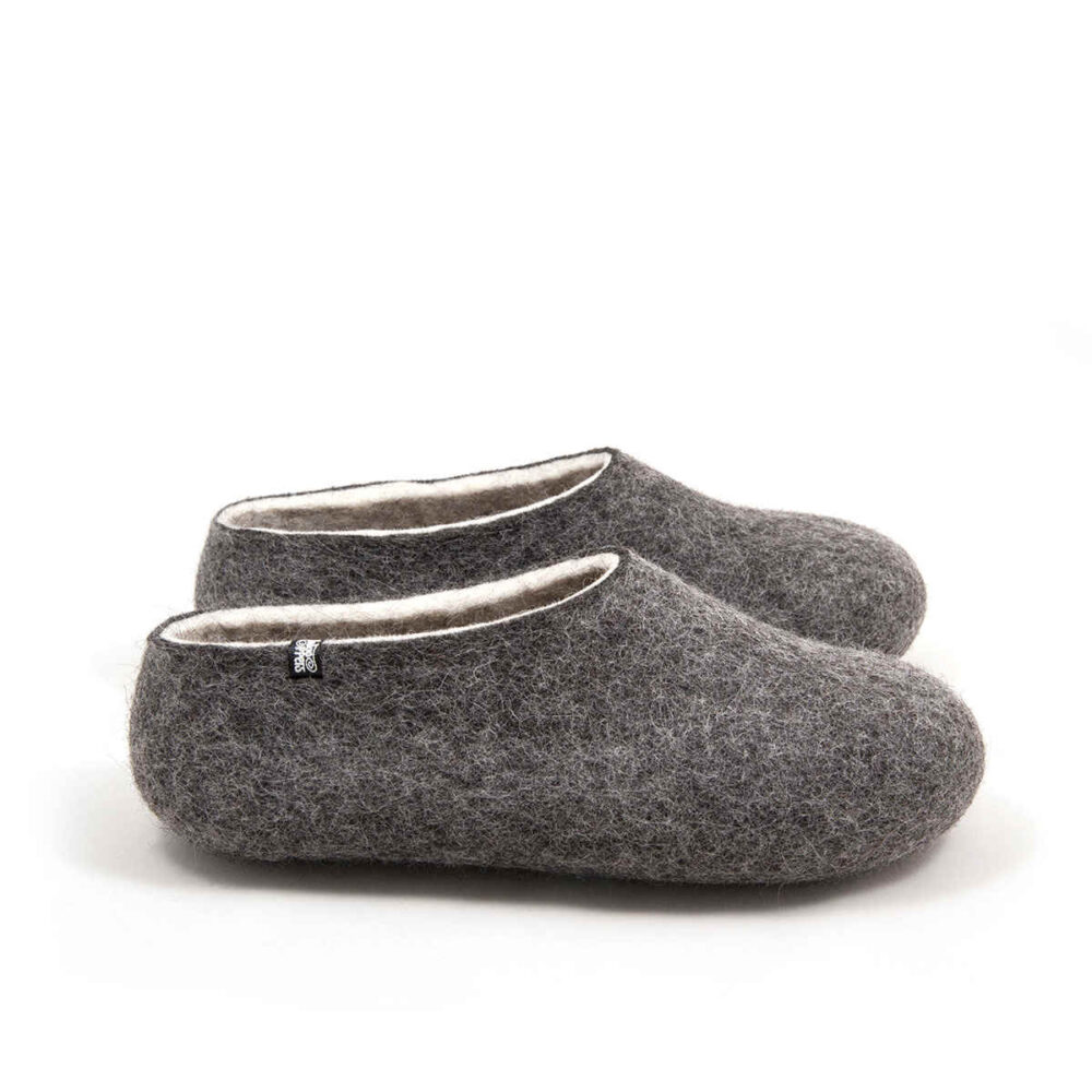 This pair of grey and white organic wool slippers is the newest arrival in our COLORI collection. Made from undyed wool, they highlight the natural contrast of the fibers while staying true to their organic essence.